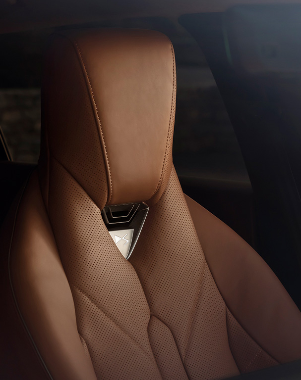 Este entorno cálido se destaca por el cuero Nappa de primera calidad, curtido de forma vegetal con hojas de olivo. Está realzado con bordes en tono "Light Gold" y molduras de aluminio cepillado con destellos dorados. Diseñado para resaltar cada detalle en un refugio atemporal, el cuero Nappa adorna los asientos con acabado de correa de reloj, el salpicadero y los revestimientos de las puertas. Las costuras en los reposabrazos de las puertas y el salpicadero se realizan con la técnica de punto de perla, una auténtica firma de DS Automobiles.