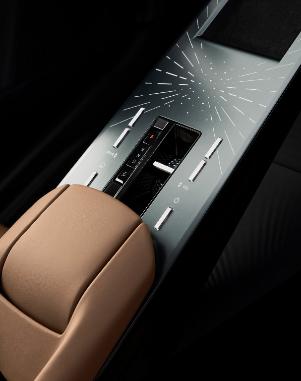La iluminación interior de N°8 crea un ambiente sereno y relajante. El juego de luces, dispuesto sutilmente, resalta las curvas ergonómicas y las texturas del espacio. Cada haz de luz está cuidadosamente posicionado para evocar una poesía visual, transformando el entorno en una pintura viva donde cada detalle contribuye a una atmósfera armoniosa y cautivadora. Sensual e innovador, el volante en forma de X pertenece al desarrollo de la marca, ofreciendo nuevas zonas de agarre que mejoran el confort y la experiencia de conducción.